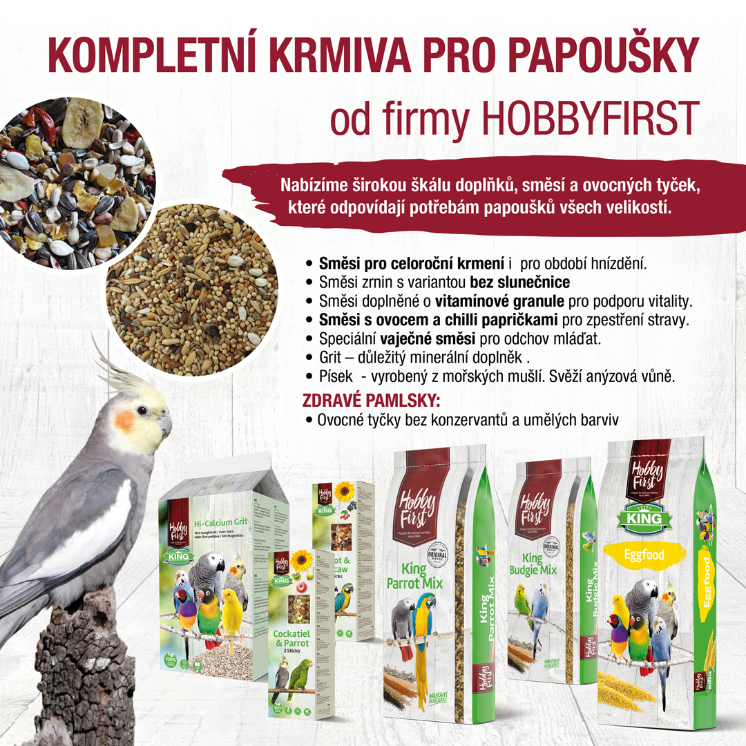 Směs zrnin určená pro střední a velké papoušky s vysokým podílem slunečnice, který přesahuje 50 %. Obsahuje vybrané kvalitní suroviny pro zajištění dostatečného příjmu energie a tuků